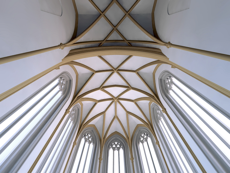 Ohne Unterbrechung durch trennende Gurte spannt sich ein durchgehendes Netz aus Rippen über den gesamten Chorbereich hinweg.