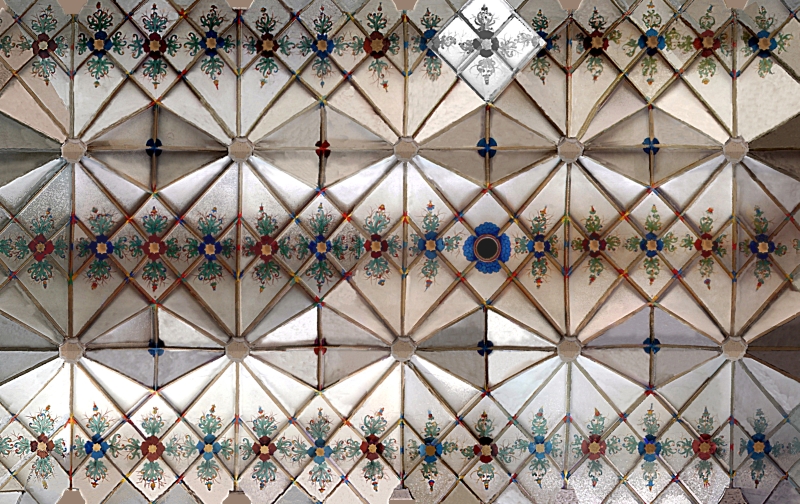 Sobald man sich etwa in der Raummitte zwischen den Pfeilern befindet, lässt die starke longitudinale Sogwirkung etwas nach. Das weltliche Pilgern verlangsamt sich. Während die körperliche Bewegung schwächer wird, folgt die mentale, geistige Bewegung nunmehr stärker der aufwärtsfahrenden Blickrichtung zum Gewölbe hin. Dieser Effekt wird natürlich durch die schlanken Pfeilerschäfte vorbereitet und durch die starke Wirkung des Gewölbes erheblich verstärkt. Das Gewölbe erscheint eingerahmt durch die umlaufende Empore als Himmelswiese und als Angebot, in das Paradies aufzusteigen.